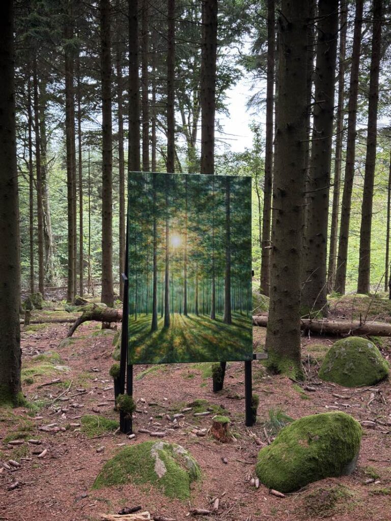Titel: Skogsljus Material: Oljemålning på träskiva